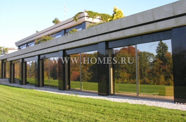Выше второго этажа находится большая терраса площадью 300 кв.м с которой открывается великолепный вид на озеро и Швейцарские Альпы.